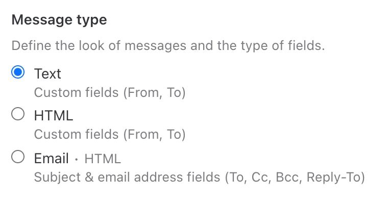 The following settings apply only to the Text or HTML message types.
